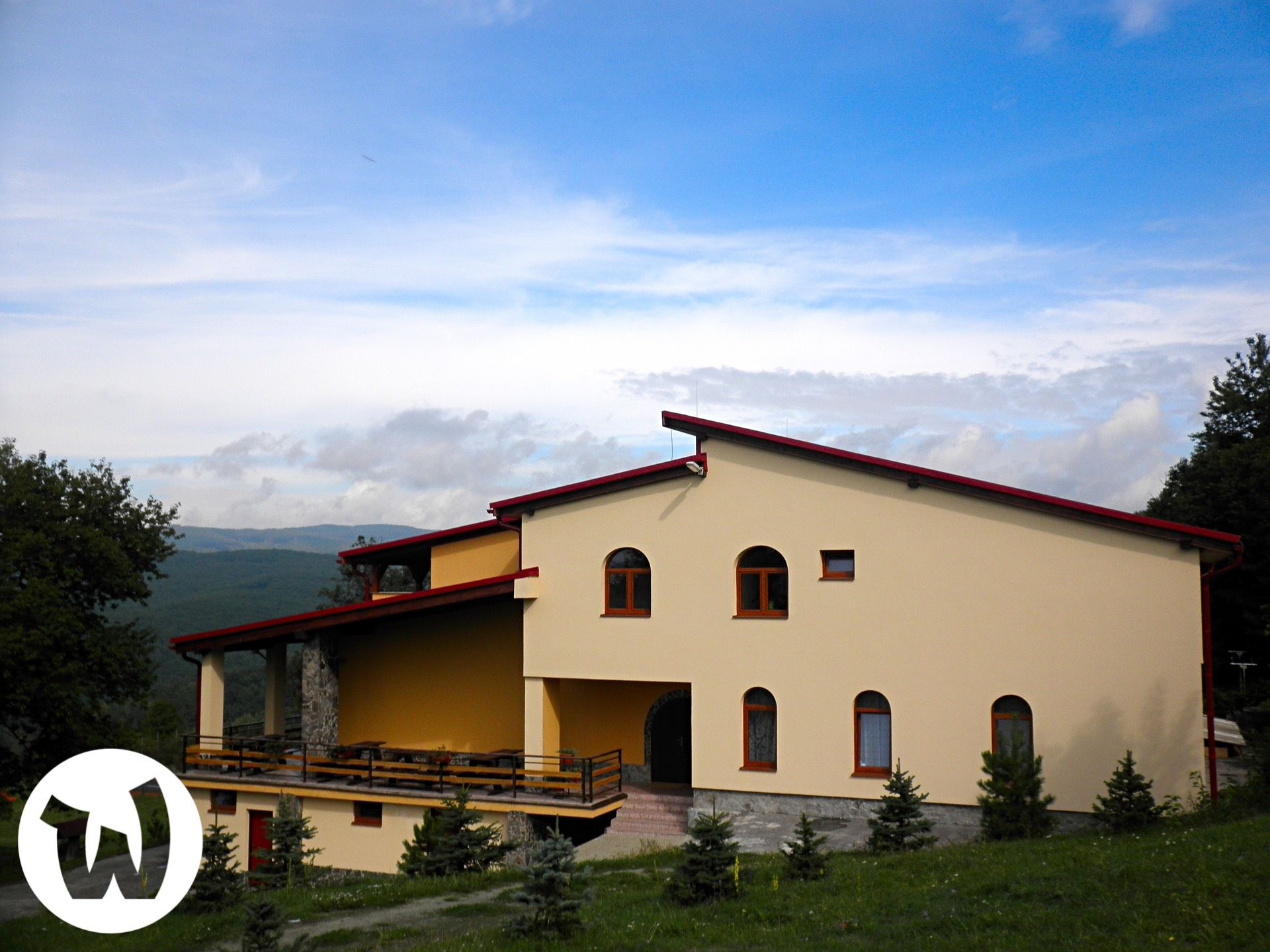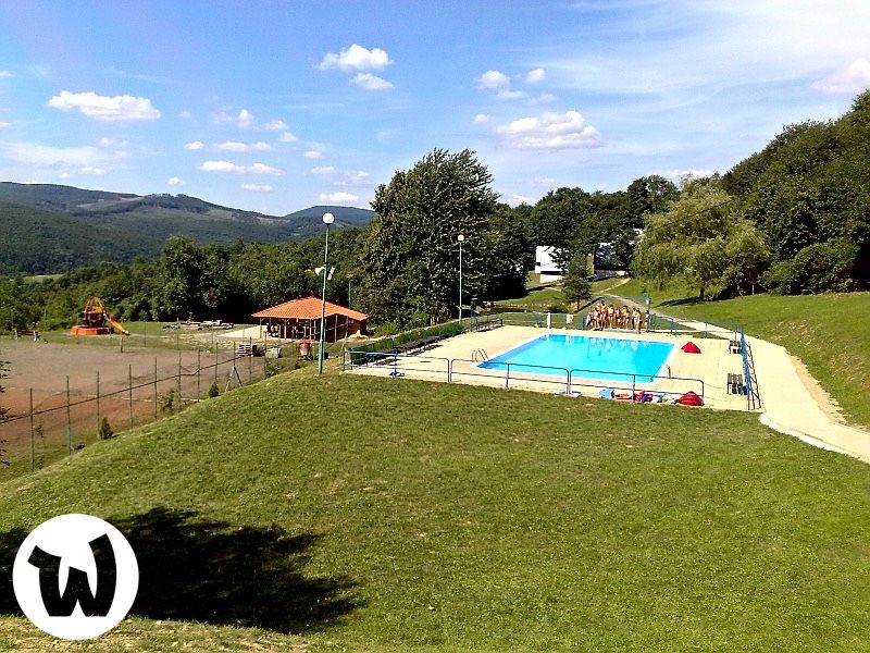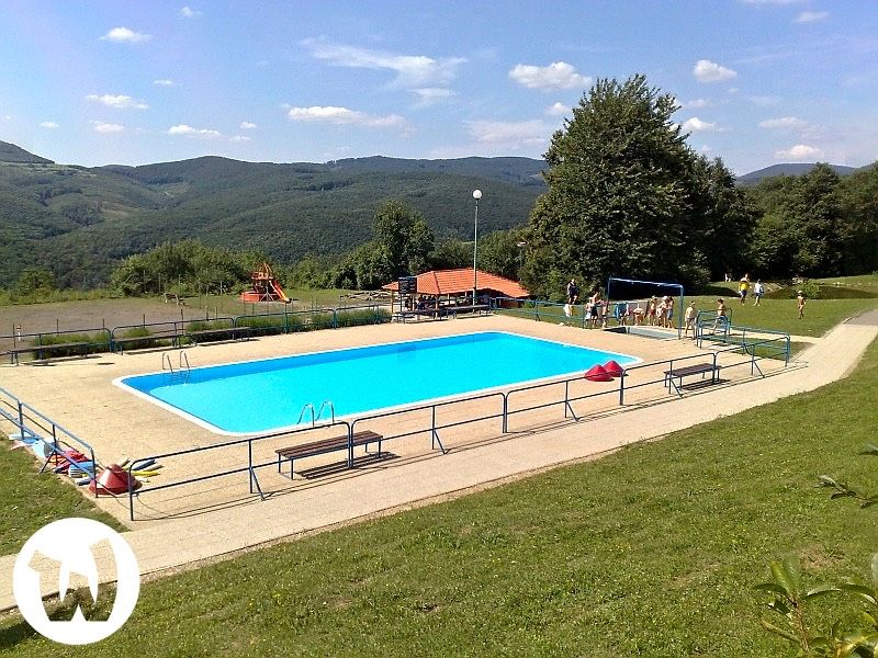 jedáleň, spoločenská miestnosť, TV, DVD, WIFI internet, 3 altánky, ohnisko, detské ihrisko, jazierko, vonkajší bazén, futbalové a multifunkčné ihrisko, veľké parkovisko.